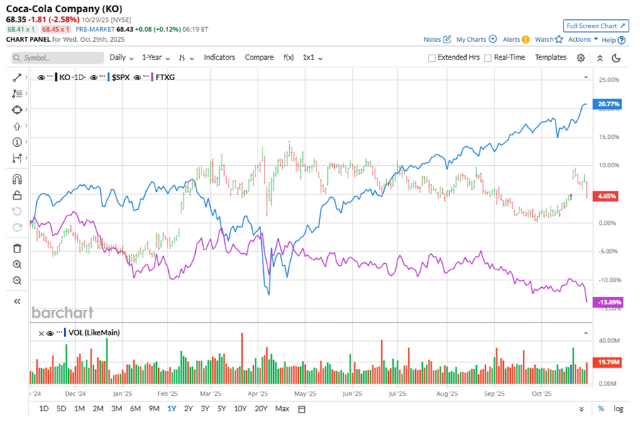 Shares of this beverage giant have underperformed the broader market over the past year. KO has gained 4.3% over this time frame, while the broader S&P 500 Index ($SPX) has rallied nearly 18.1%. In 2025, KO stock is up 9.8%, compared to the SPX’s 17.2% gains on a YTD basis.