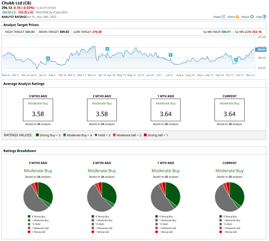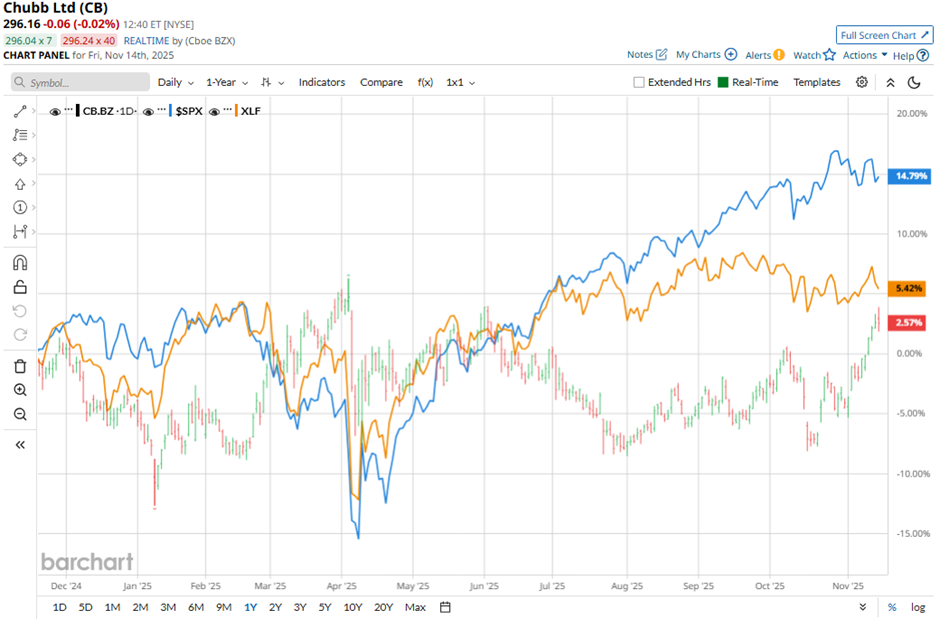 On Oct. 27, Cantor Fitzgerald raised its price target on Chubb to $300 while maintaining a “Neutral” rating.