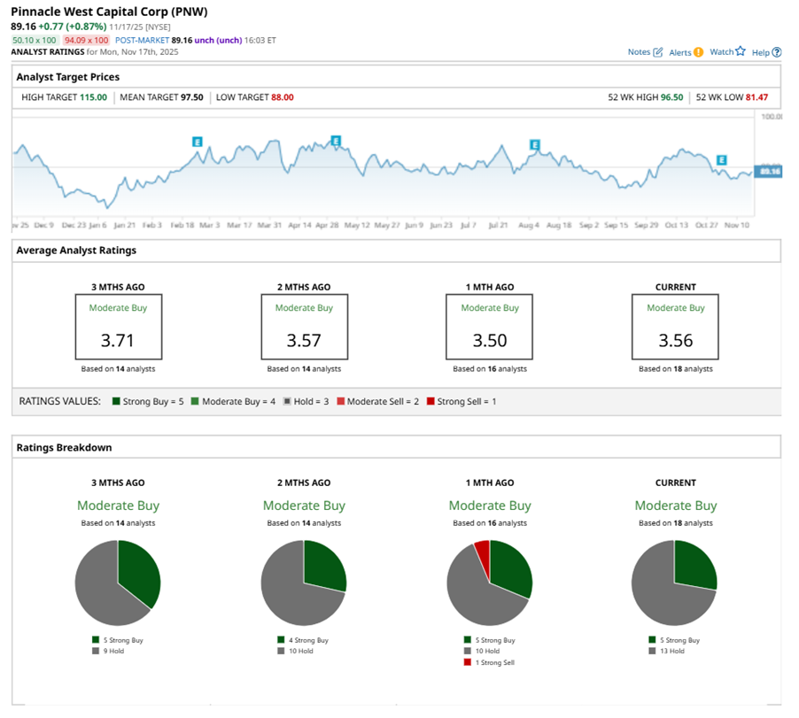 On Nov. 12, Shelby Tucker from TD Cowen maintained a “Hold” rating on PNW with a price target of $97, implying a potential upside of 8.8% from current levels.