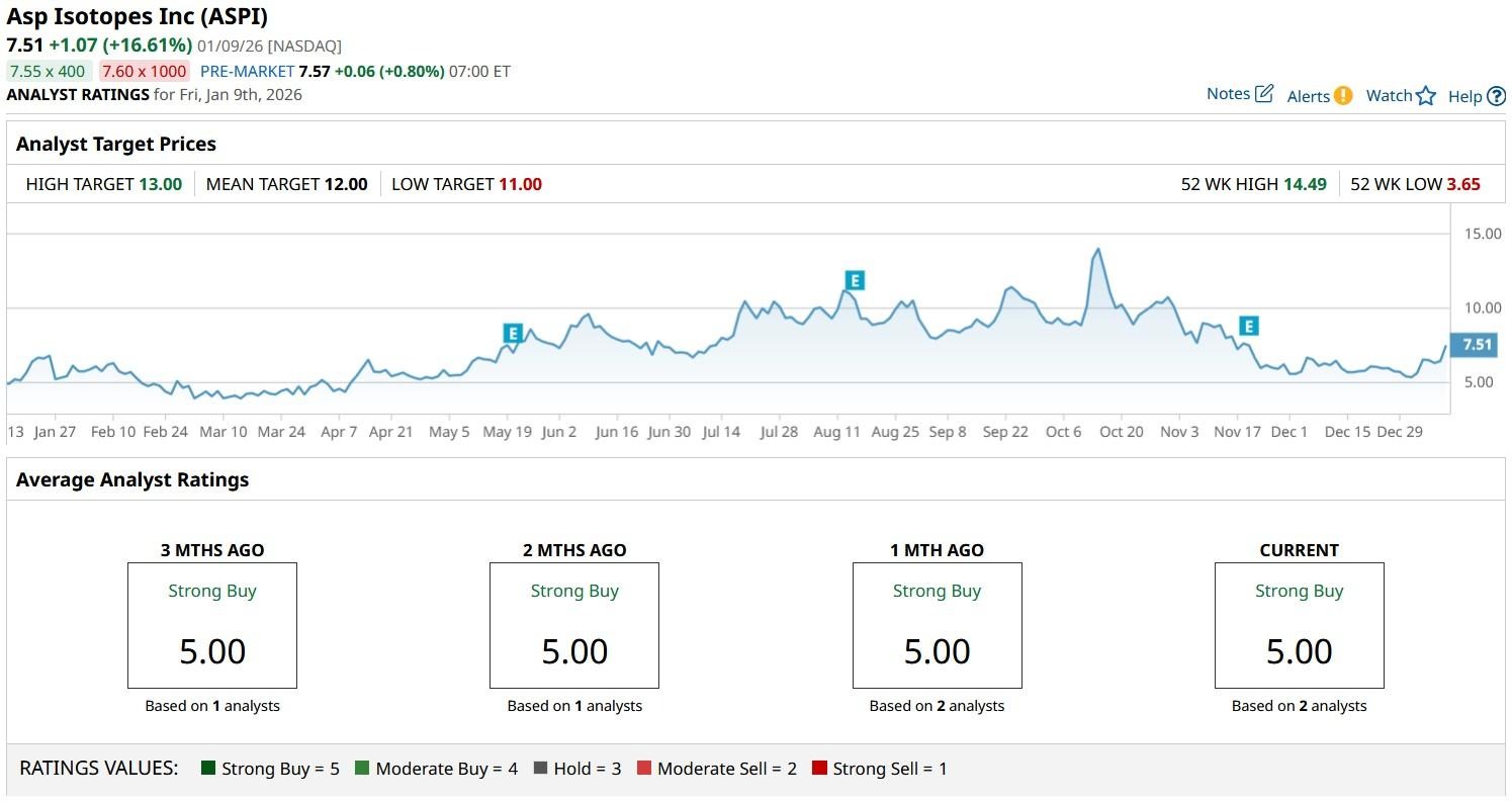 Their mean target on ASP Isotopes sits at $12 at the time of writing, indicating potential upside of another 70% from here.