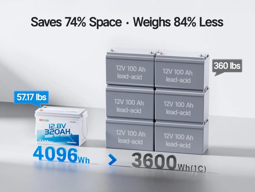 In addition, traditional lead-acid batteries typically offer only around 50% usable capacity, while Redodo lithium batteries can deliver up to 100% usable capacity, making them better suited for users with greater energy demands.