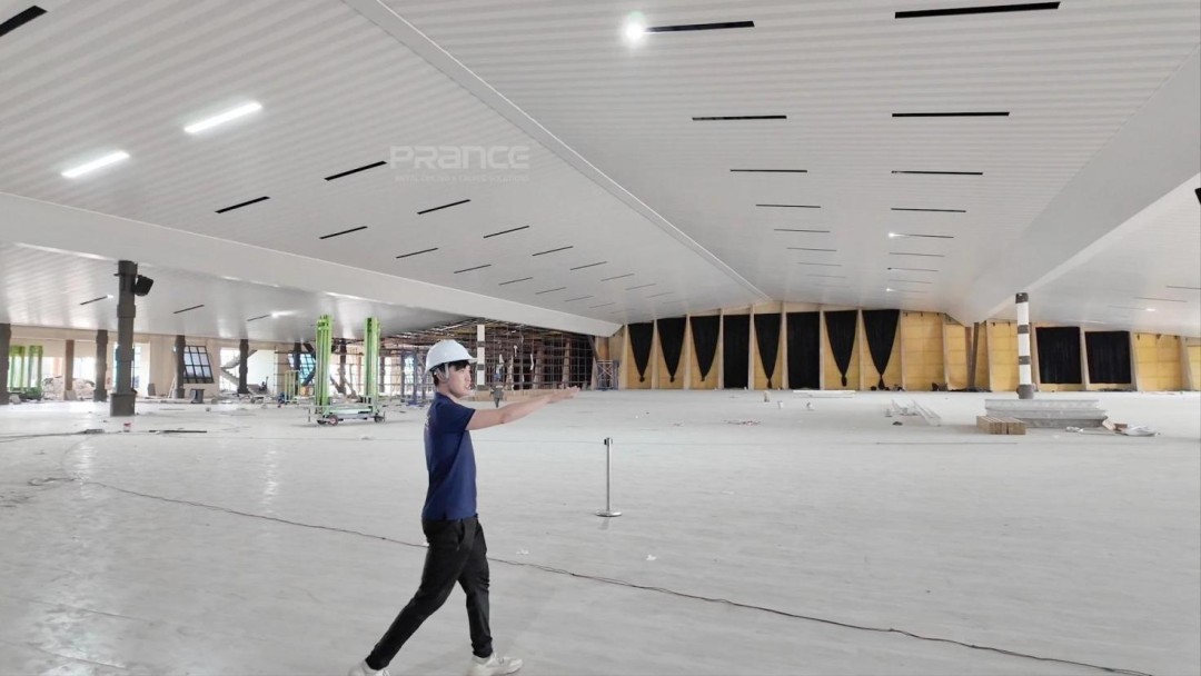 As part of its rigorous project management process, PRANCE conducted partial pre-installation testing of the perforated metal ceiling system at its factory prior to delivery. This trial assembly ensured that panel dimensions, perforation layouts, and alignment matched the project’s structural requirements precisely.
