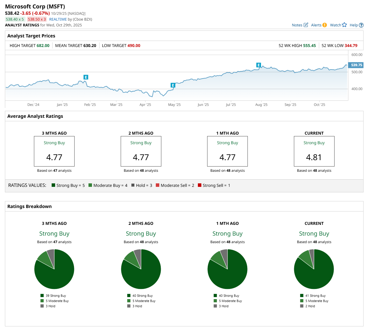 The mean price target of $630.20 represents a 17% premium from MSFT’s current price levels, while the Street-high price target of $682 suggests an upside potential of 26.7%.