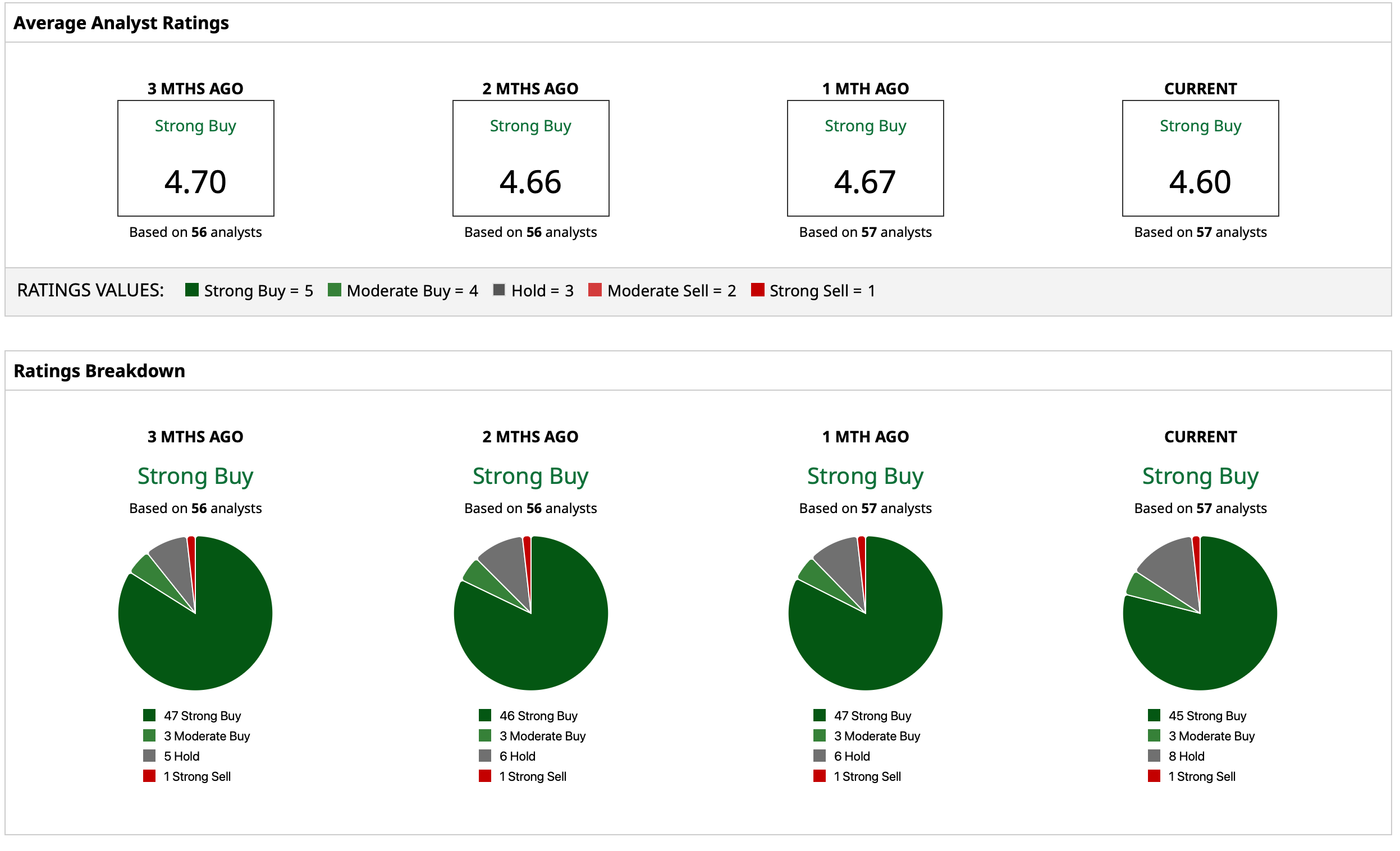 Taking all of this into account, analysts have still earmarked an overall rating of “Strong Buy” for the META stock, with a mean target price of $843.94. This represents an upside potential of about 35% from current levels. Out of 57 analysts covering the stock, 45 have a “Strong Buy” rating, three have a “Moderate Buy” rating, eight have a “Hold” rating, and one has a “Strong Sell” rating.