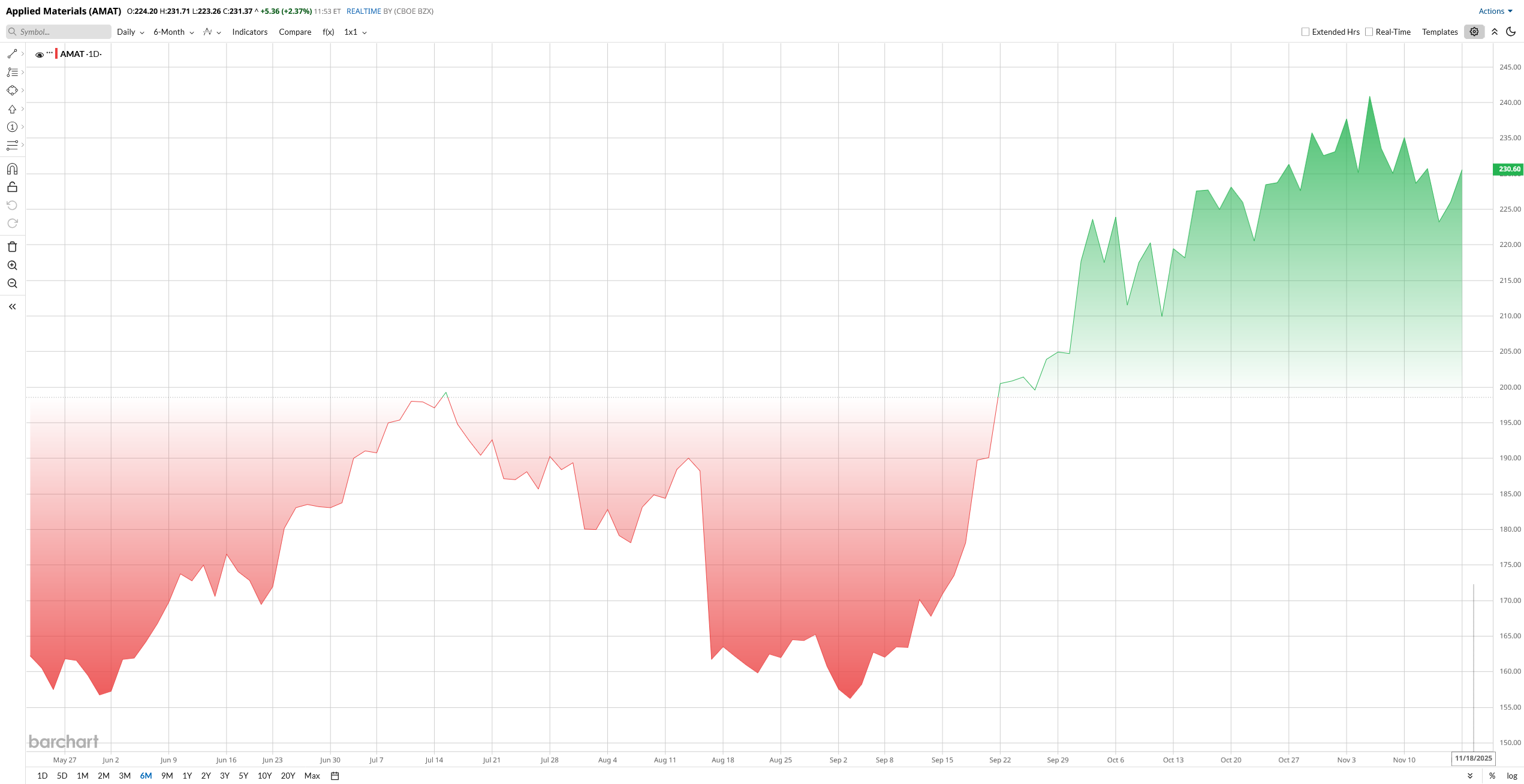 Fast forward to early October, when AMAT unveiled next-generation chipmaking systems, such as the Kinex hybrid bonder and the Xtera epitaxy tool, designed for advanced logic, memory, and AI chips. These innovations signal the company is staying at the cutting edge of chip tech.