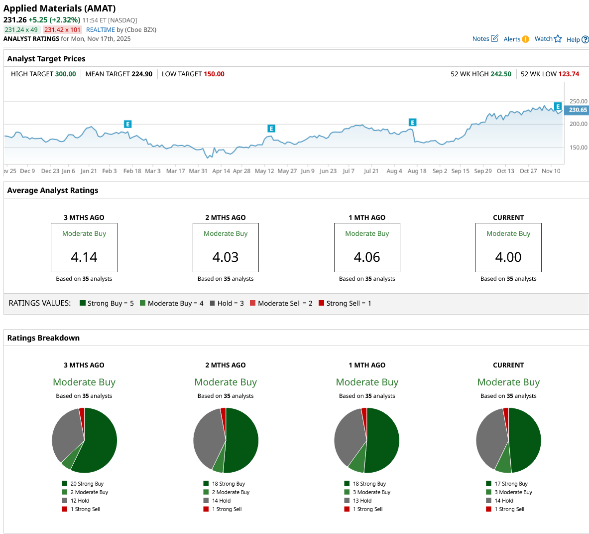 Similarly, Goldman Sachs has been bullish too: it maintained a “Buy” rating with a $250 target, and the firm’s analysts highlight AMAT’s exposure to the memory chip cycle. Even more aggressively, Evercore ISI reaffirmed its “Outperform” rating and set a lofty $290 objective.