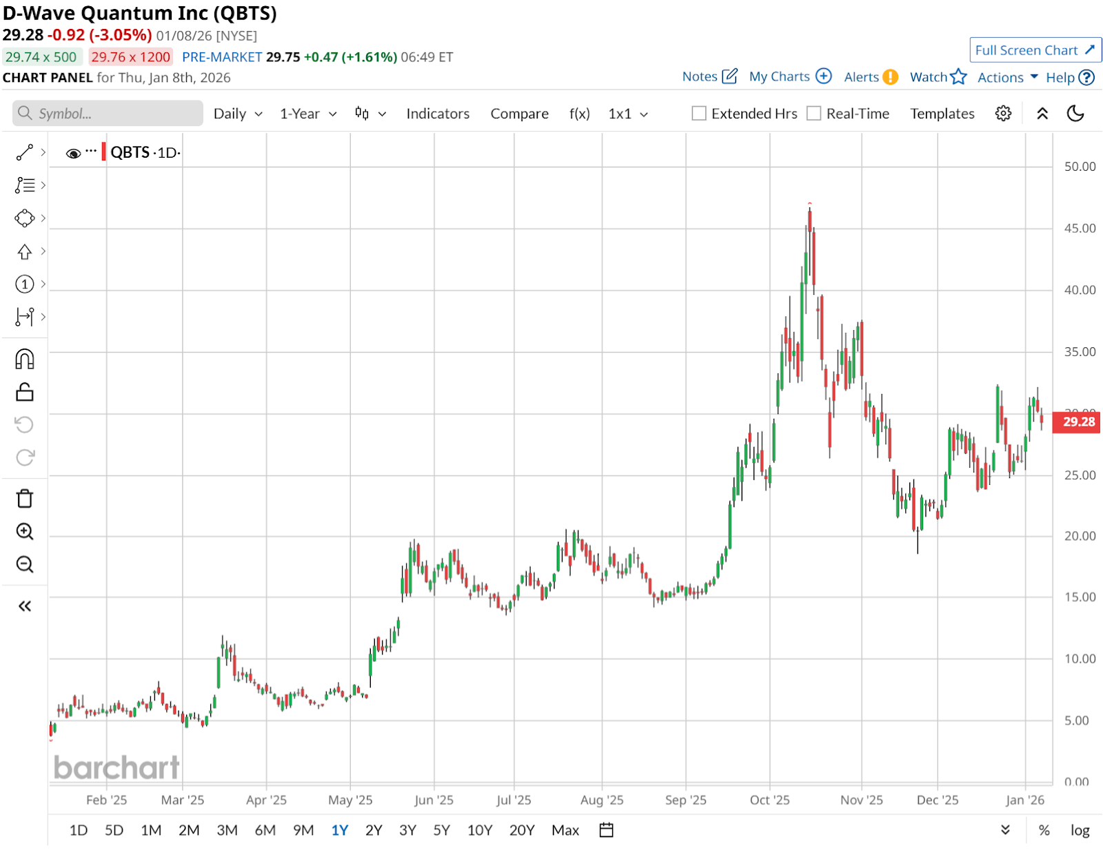 D-Wave Quantum (QBTS) makes money in a few connected ways. It provides cloud access to its annealing quantum computers, builds out gate-model systems, and sells software and services that companies can use for optimization and increasingly AI-related work. Over the past 52 weeks, QBTS is up roughly 360% and up 7.5% year-to-date (YTD), which shows a shift in sentiment.