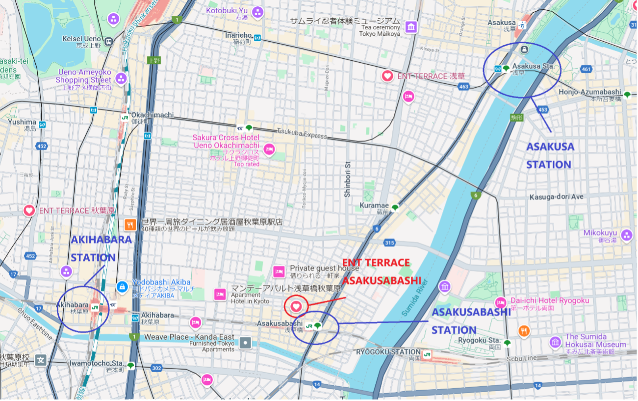 - Location of ENT TERRACE ASAKUSABASHI and Major Stations Near to the Hotel