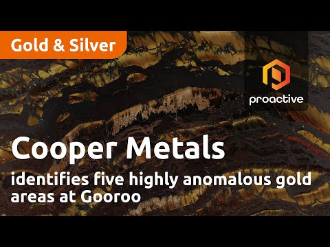 Cooper Metals Ltd (ASX:CPM) MD Ian Warland tells Proactive the company has identified five broad gold anomalies for follow-up work from an infill soil sampling program at the Gooroo Project in Western Australia. The anomalies occur in potentially favourable structural trap sites such as the nose of the Gullewa syncline and significant regional faults traversing the greenstone belt, known to be important for the formation of gold deposits elsewhere in the belt.